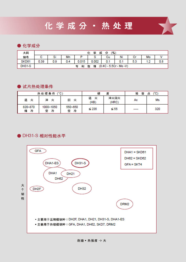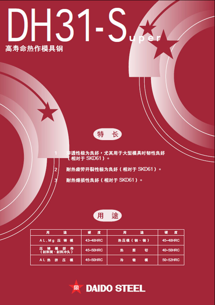 簡(jiǎn)要描述:日本大同DH31-S熱作模具鋼:高韌性*高溫強(qiáng)度改良鋼...